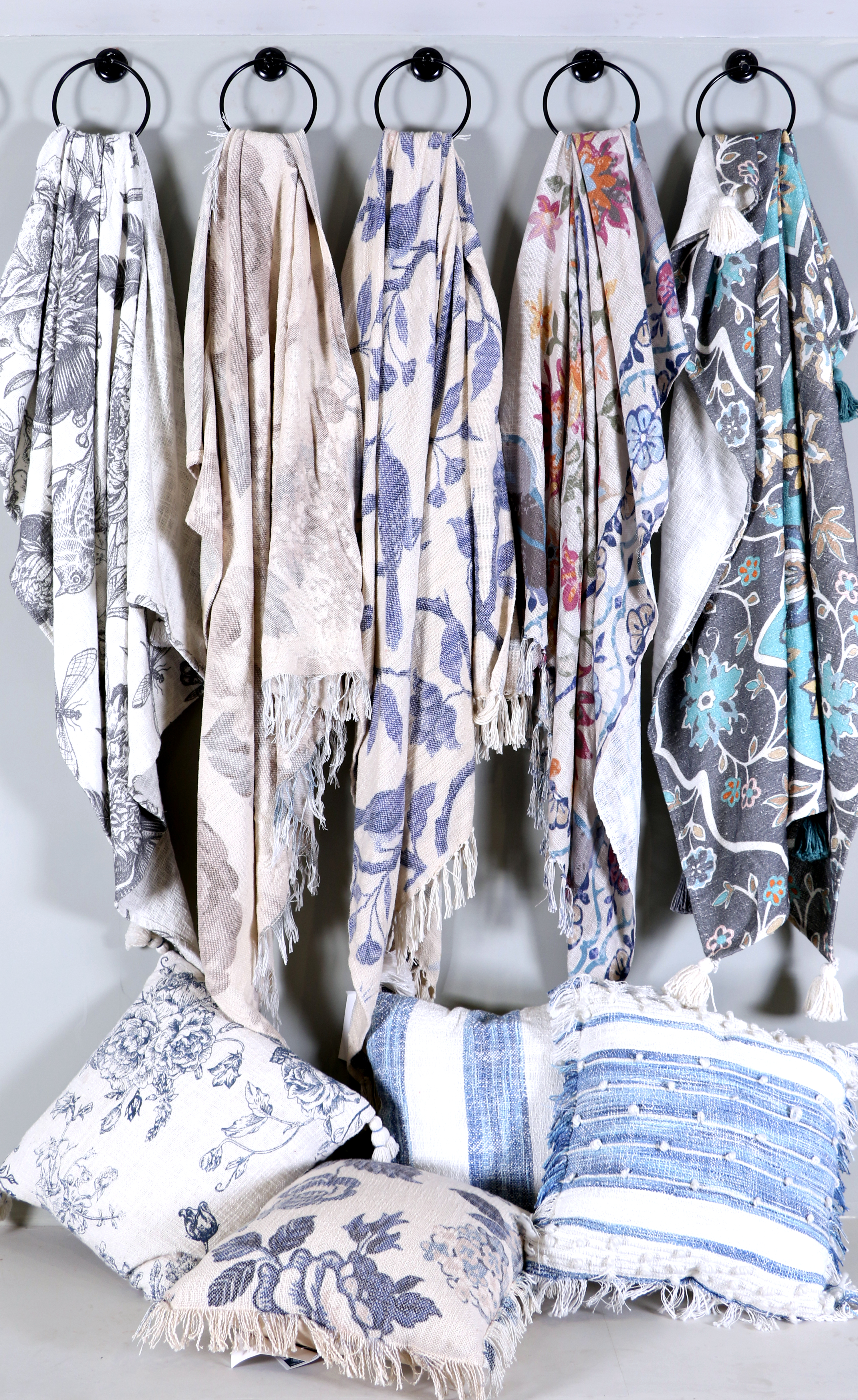 Linen throws and pillows are crafted from natural linen fabric, known for its soft texture, breathability, and timeless elegance. They add a relaxed, sophisticated touch to any space while providing comfort and versatility. Perfect for layering on sofas, beds, or chairs, linen throws and pillows enhance interiors with effortless style and natural charm.