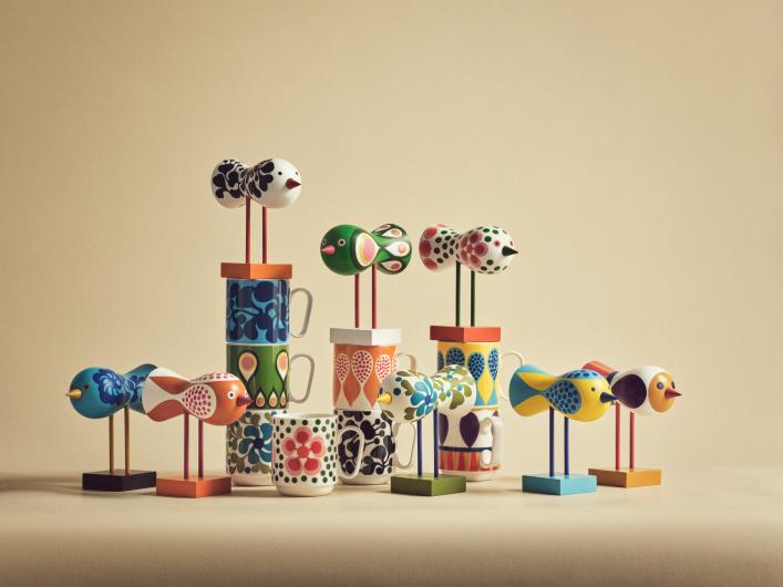 Ihr Schatz blieb seit 1967 gut behütet – zuerst im Sommerhaus der Familie in Südschweden und später in ihrem Atelier außerhalb von Stockholm. „Ich entdeckte diese großartigen Entwürfe bei einem Besuch in Lisas Atelier“, sagt Anders Färdig, Gründer von Design House Stockholm. „Ich war völlig fasziniert von diesen Vögeln, die nach Aufmerksamkeit verlangten. Warum waren sie nicht in Produktion? Der mexikanische Look, die übergroßen Flower-Power-Muster: Lisa Larsons Vögel sind fast wie Friedens tauben, eine Erinnerung an eine Zeit, in der die junge Generation gegen den Krieg protestierte und von einer neuen Gesellschaft träumte.“
