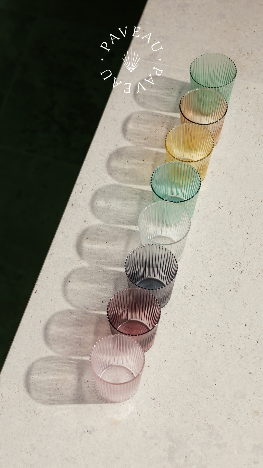 Paveau Glassware offers a unique collection of refillable and sustainable water bottles (carafes) and glasses. Our distinctive pieces are available in different colours, allowing effortless mixing and matching to complement any interior or mood.