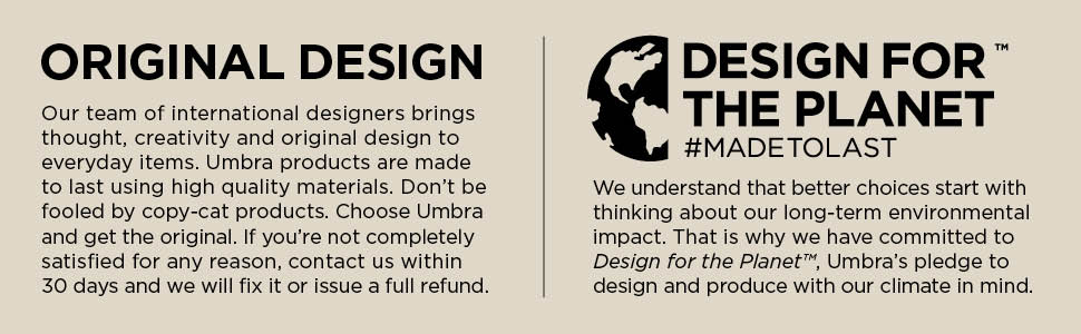 Umbra was born out of passion for original design and the desire to create products for every home. At Umbra, our team of international designers brings thought and creativity into everyday items. Driven by innovation, we pull inspiration from the global marketplace, in order to push boundaries in our approach to original design.