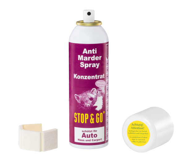 Sprayable marten repellent. Concentrate with long-lasting effect – smells like a dangerous predator to the marten. No need for extensive spraying of all vulnerable parts. Simply affix the included scent reservoirs in selected areas and spray regularly with scent concentrate. For universal use in cars, homes, gardens or carports.