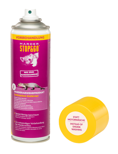 Easily removes the marten’s scent mark, with no need for risky engine washing. Safe for electronic components as well as for paint, rubber and plastic.