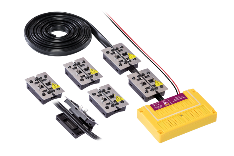 Thanks to SKT, simply pushing together the plates establishes contact between a spike and the two-pole high-voltage cable. The PLUS and MINUS two-pole design ensures that an electric shock is produced, regardless of the materials used in the engine compartment. This safe but effective electric shock (electric fence principle) will keep martens away from even modern vehicles that have many parts made of non-conductive materials such as plastic.
